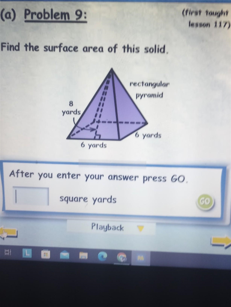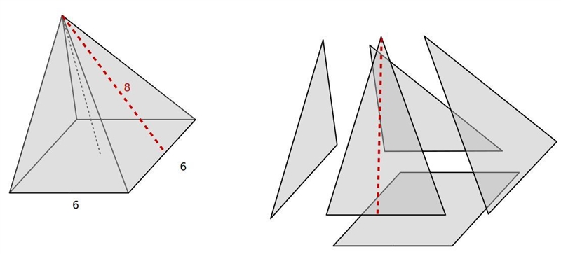 so the surface area is really just the area of four triangles with a base of 6 and a height of 8, and a 6x6 square.