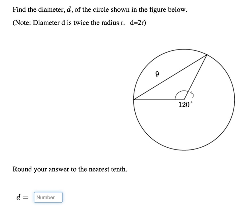Using cosine rule:9^2 = r^2 + r^2 - 2(r)(r) x cos(120)81 = 2r^2 - 2r^2 x cos(120)