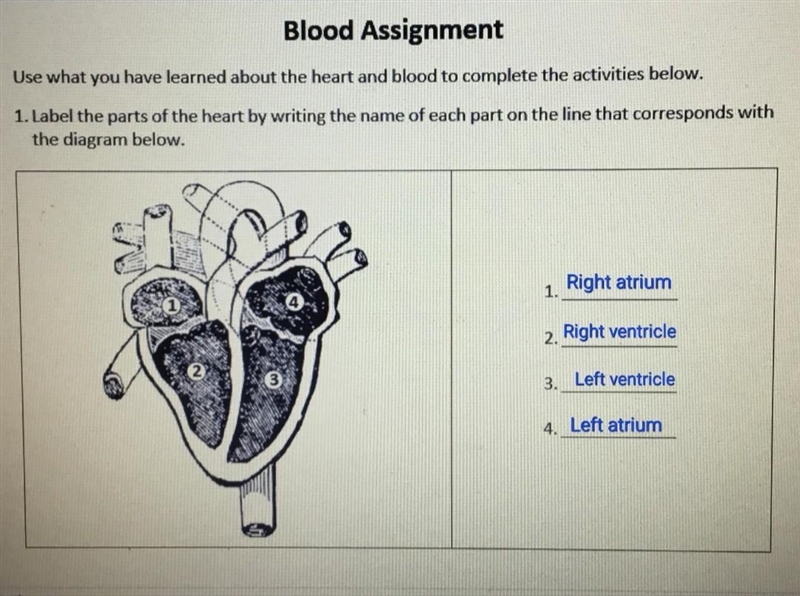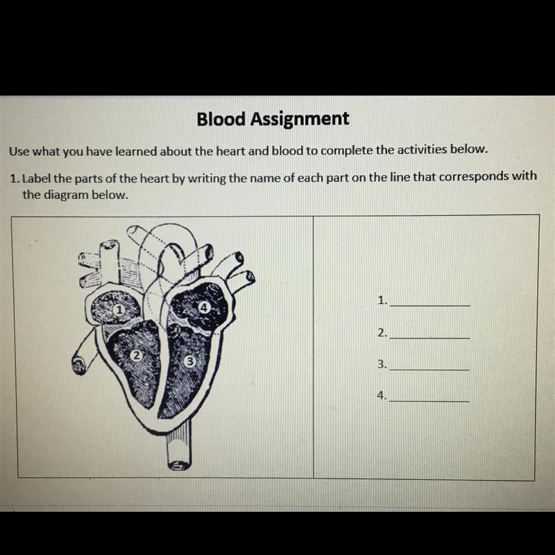 1. Lab the parts of the hearts by writing the name of each part on the line that corresponds with the diagram below :