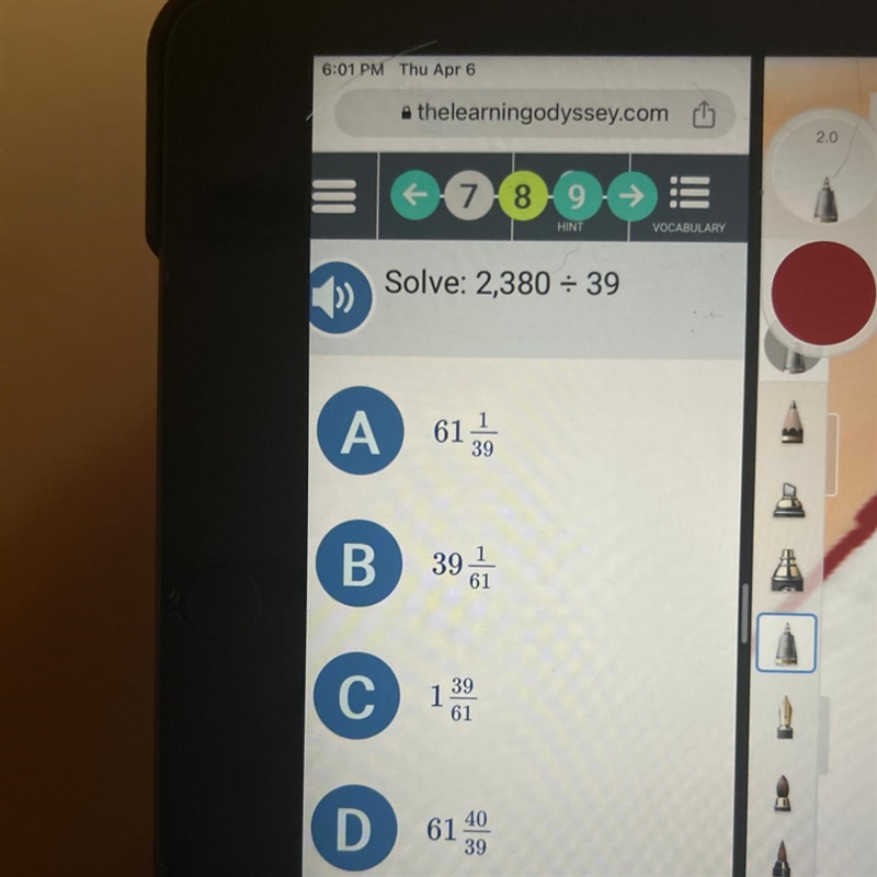 The 39 divided from 2380 goes at the bottom as the denominator.