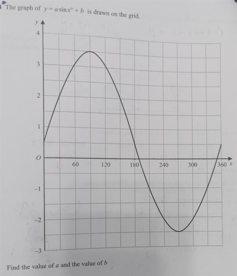 To find the values of a and b in the equation y = a sin(x°) + b, we need to use the information given in the graph.