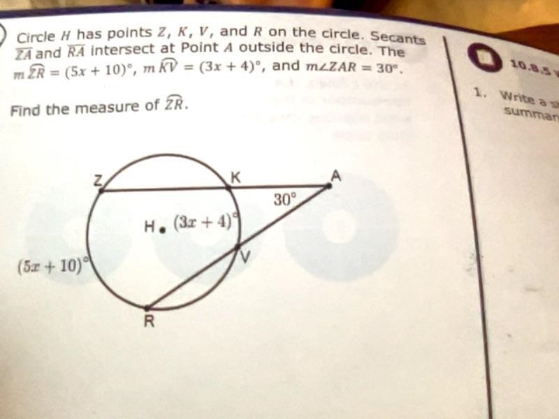 ZR = 5x + 10 = 5(27) + 10 = 135 + 10 = 145°