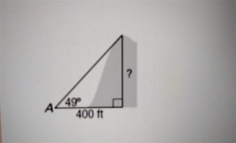 This is a right triangle, where the side adjacent to the angle of elevation (400 feet) is the base and the side opposite the angle of elevation is the height we're trying to find.