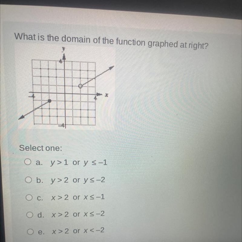 The domain of a graph is all of the x-values covered by the function. The domain does not reflect the y-values of a function. This means that answers A and B are automatically wrong.