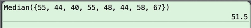 You want the median of the data set {55, 44, 40, 55, 48, 44, 58, 67}.