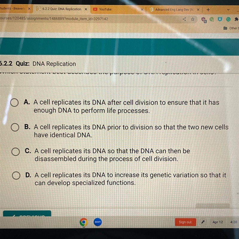 DNA replication is the process by which a double-stranded DNA molecule is copied to produce two identical DNA molecules. Replication is an essential process because, whenever a cell divides, the two new daughter cells must contain the same genetic information, or DNA, as the parent cell.
