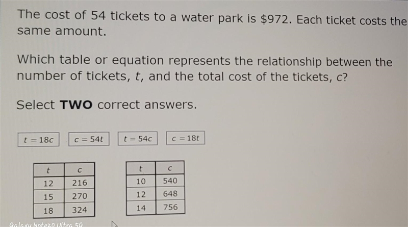 The equation that represents the relationship between the number of tickets, t and the total cost of the tickets, c is: