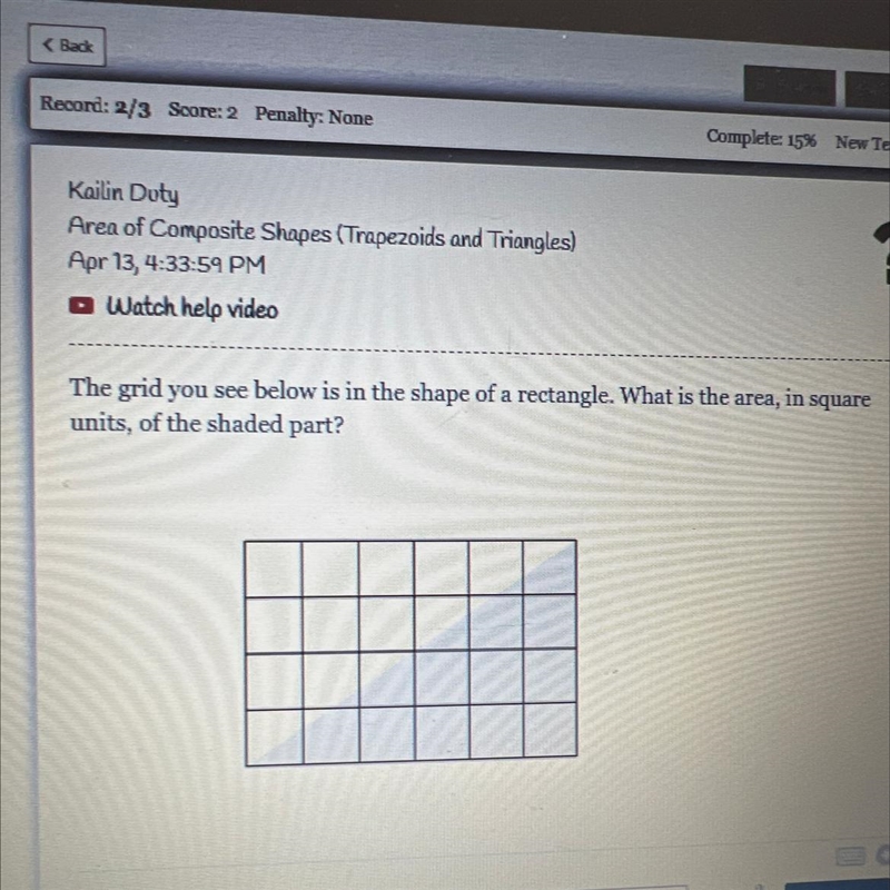 The grid you see below is in the shape of a rectangle. What is the area, in square