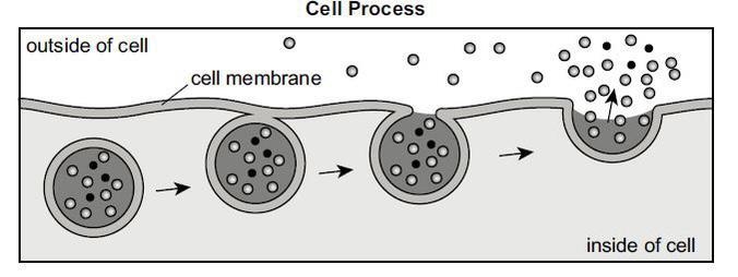 The diagram provided seems to illustrate a cell process involving substances moving across the cell membrane. This process is similar to what we understand about facilitated diffusion, where molecules or ions pass through the membrane via specific transmembrane proteins. In facilitated diffusion, the transport proteins act as carriers or channels that assist in moving substances from an area of higher concentration to an area of lower concentration without the input of energy (ATP).