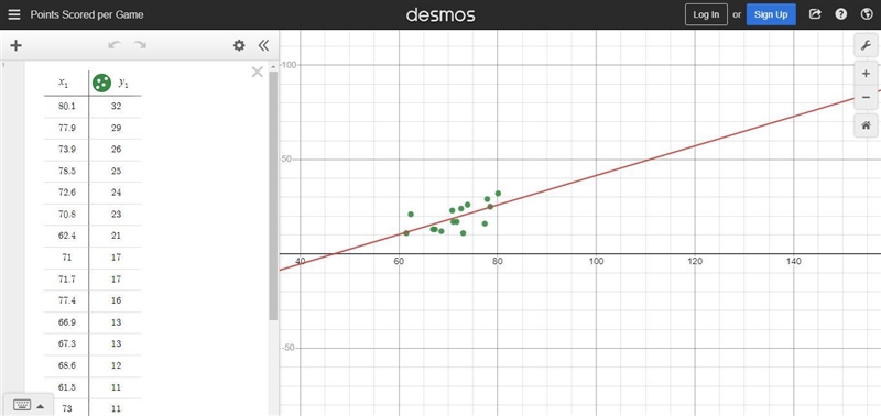 The line of best fit is drawn correctly; there are about the same amount of dots on the top and bottom of the line.