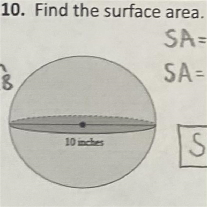 10 in. is the diameter and radius is half the diameter so the radius is 5 in.