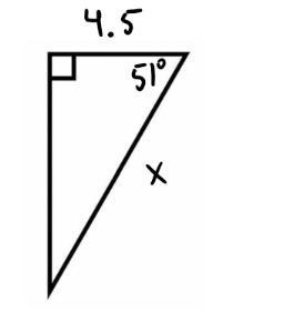 x = sin(90°)*4.5/sin(39°) ≈ 7.15