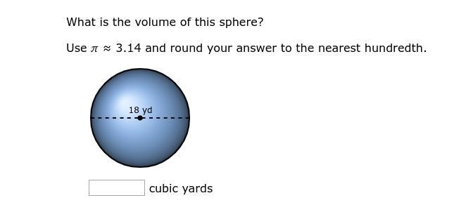 The diameter of the sphere is 18 yards, so the radius is 9 yards because have of a diameter is the radius.