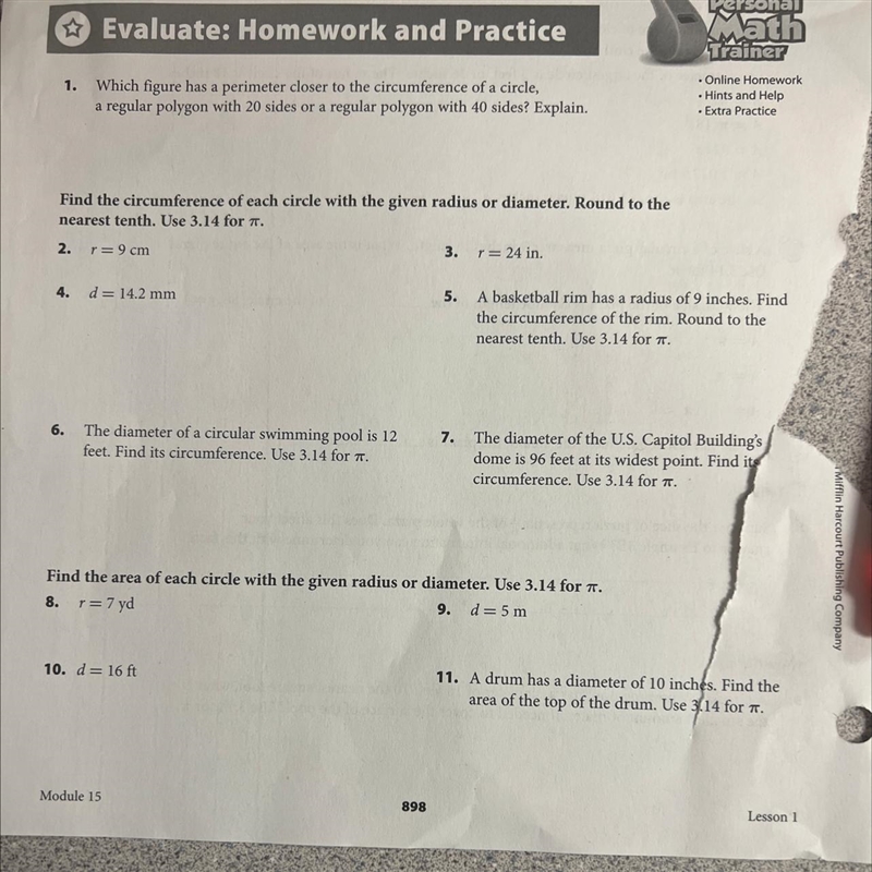 This problem is the same as problems 1 and 2, but it's in word problem format. We can keep plugging into the circumference formula.