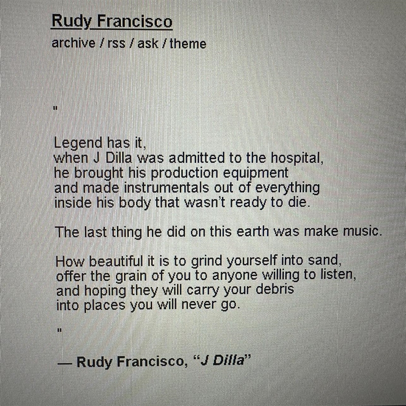 “Production equipment and made instrumentals out of everything inside his body that wasn’t ready to die”