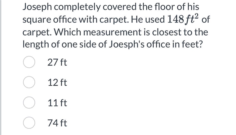 If the area of the square office is 148 ft², then the length of one side can be found by taking the square root of the area: √148 ≈ 12.17