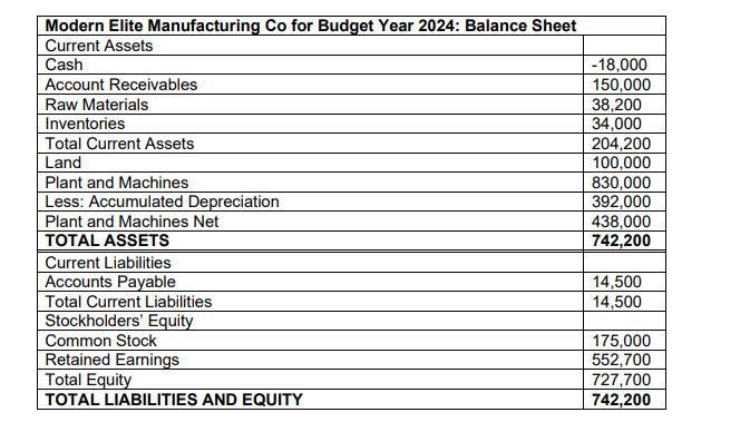 Modern Elite Manufacturing Co for Budget Year 2024: Cash Budget