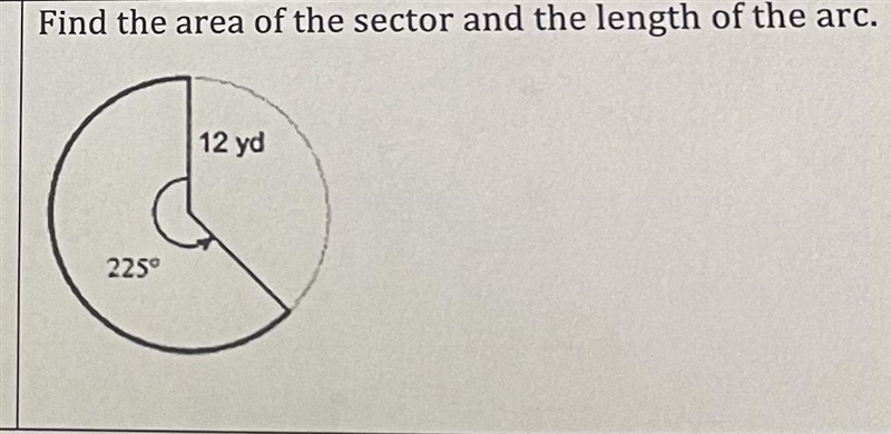 length of arc = 225/360 × 24π = 15π yd or 47.12yds (2dp)