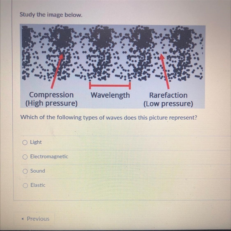 A sound wave is a pressure wave; regions of high pressure (compressions) and low pressure (rarefactions) are established as the result of the vibrations of the sound source.