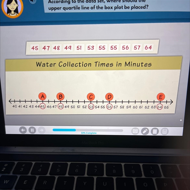 47 is before B, 49 is after B, 51 is the second to last number before C, 55 is before D, and 57 is after D.