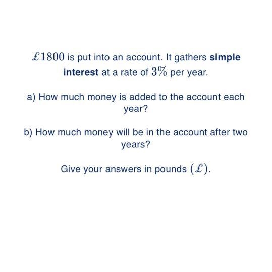 in TWO years you will have 54 * 2 added to 1800 = 1908 pounds