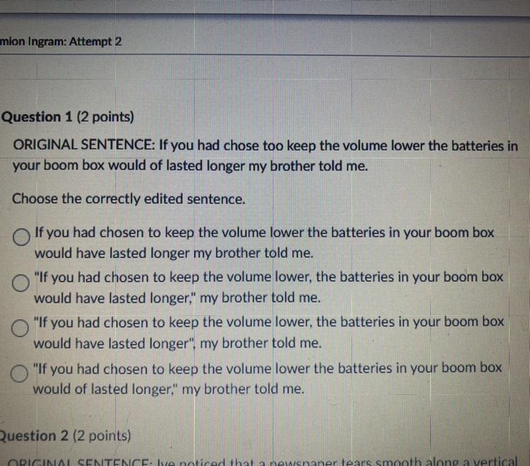 Answer: "If you had chosen to keep the volume lower, the batteries in your boom box would have lasted longer," my brother told me.