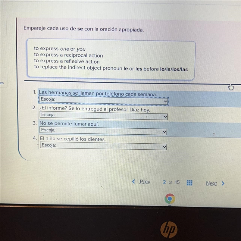 Empareje cada uso de se con la oración apropiada. -to express one or you -to express-example-1