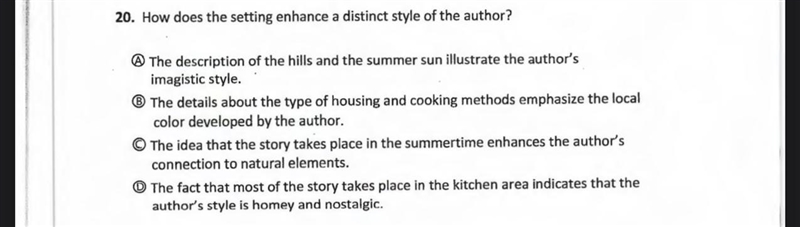 20. How does the setting enhance a distinct style of the author?