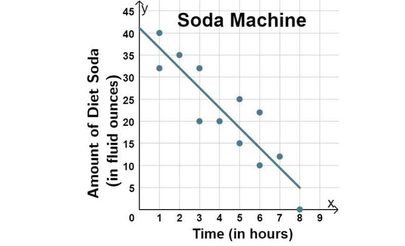 The y-intercept is 41.16. The machine loses about 41.16 fluid ounces of diet soda each hour.
