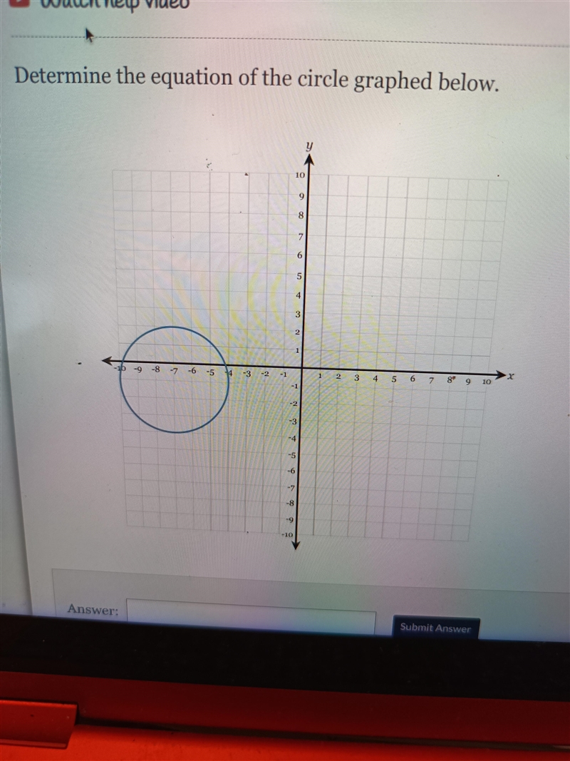 Now compute the distance from the center (-7,-1) to a point on the circle's edge. Let's say we picked (-7,2)