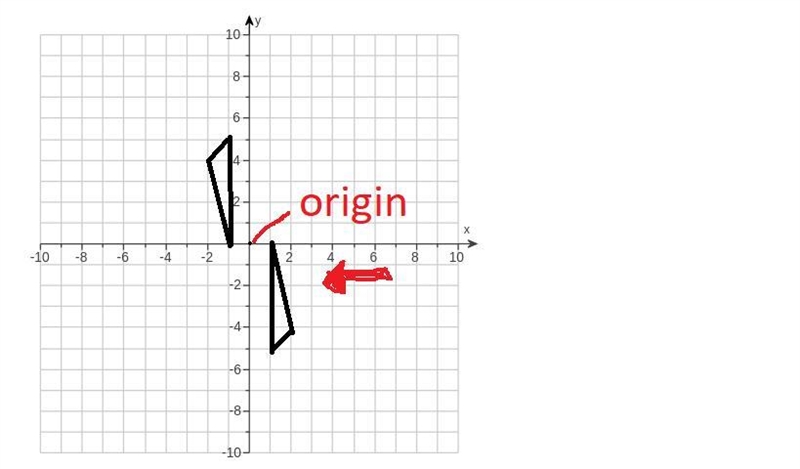 I will describe the original unrotated shape's coordinates. The top point is L, middle point is M, bottom point is N. The origin is where the axis meet. 180 degrees means to rotate the shape using the origin until it's upside down. The new shape is the one with the arrow pointing towards it. L is (1,-5). M is (2, -4). N is (1,0)