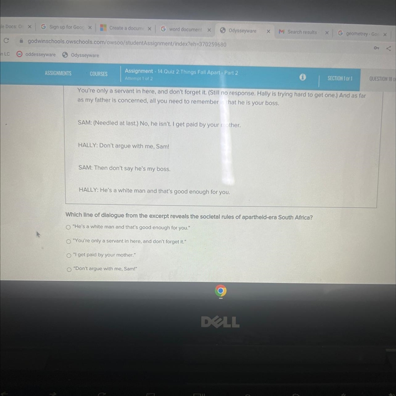 SAM: (Needled at last.) No, he isn't. I get paid by your mother. HALLY: Don't argue with me, Sam! SAM: Then don't say he's my boss. HALLY: He's a white …