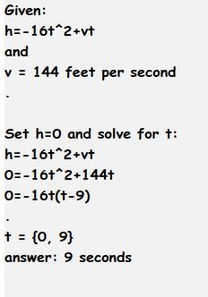 When an object is launched into the air, it’s height (in feet) above the ground is given by h = vt - 16t^2 where t is seconds after the launch and v is the object’s initial upward velocity in ft/sec. A gun is fired in the air and the bullet's initial velocity is approximately 3,000 ft./sec. How long will it take the bullet to come back to the ground assuming there is no interference with it's path?