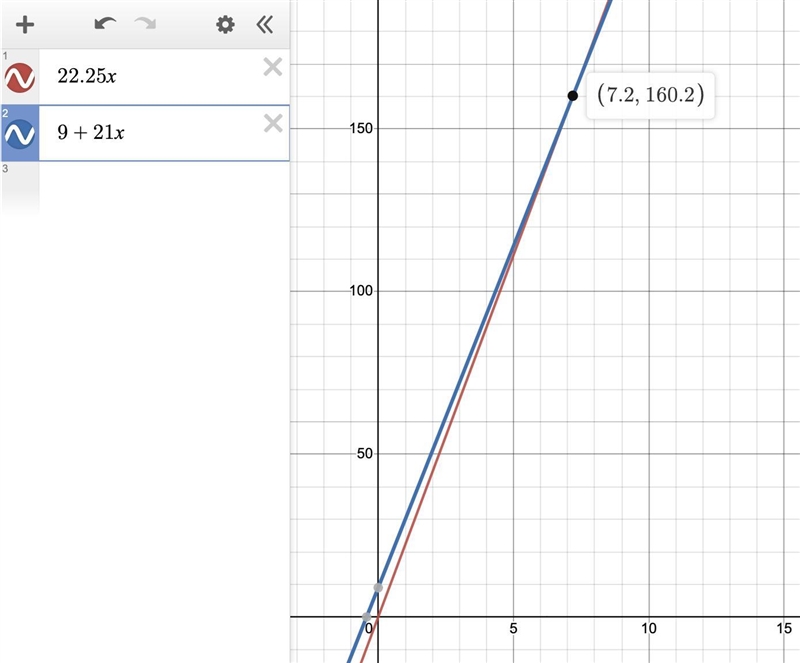 You want the number of rental hours that will result in the same charge if one store rents for $22.25 per hour, and the other store rents for $21.00 per hour with an added $9 charge.