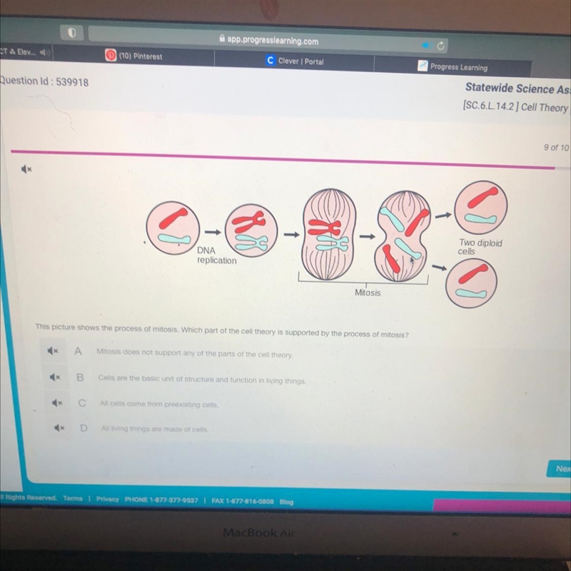 Explanation: A cell duplicates all of its contents, including its chromosomes, and splits to form two identical daughter cells.