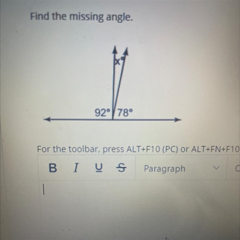 92° + x + 78° = 180°