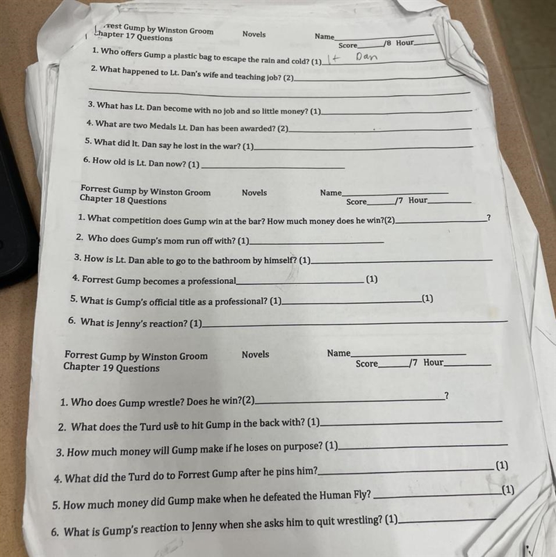 Lt. Dan's wife died, and he lost his teaching job.