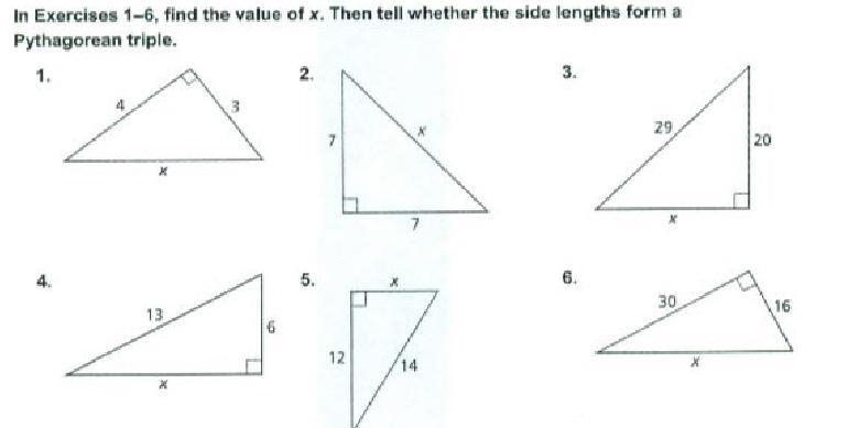 Find the value of x and tell whether the side lengths form a Pythagorean triple.