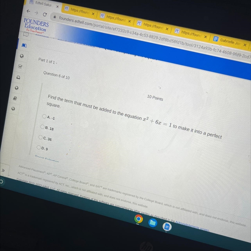 Find the term that must be added to the equation x² + 6x = 1 to make it into a perfect-example-1