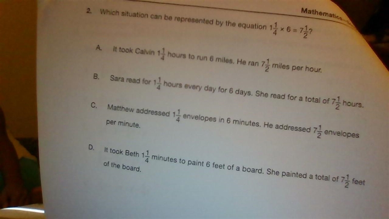 Therefore, the situation can be represented by the equation 1 1/4×6=7 1/2