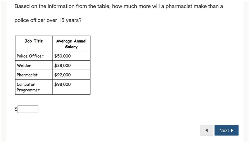 Based on the information from the table, how much more will a pharmacist make than a police officer over 15 years?