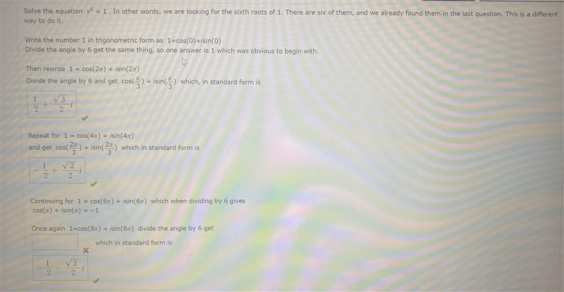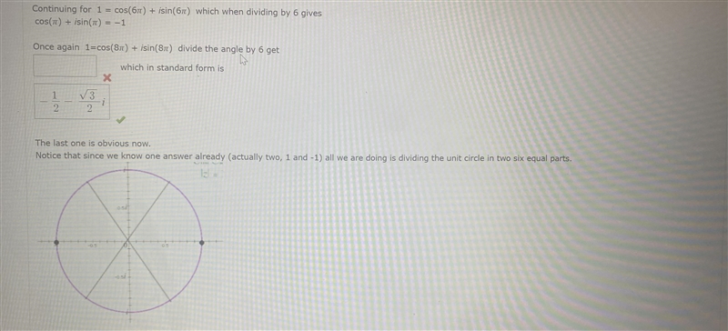 Answer: 1/6 = cos(8π)/6 + i*sin(8π)/6