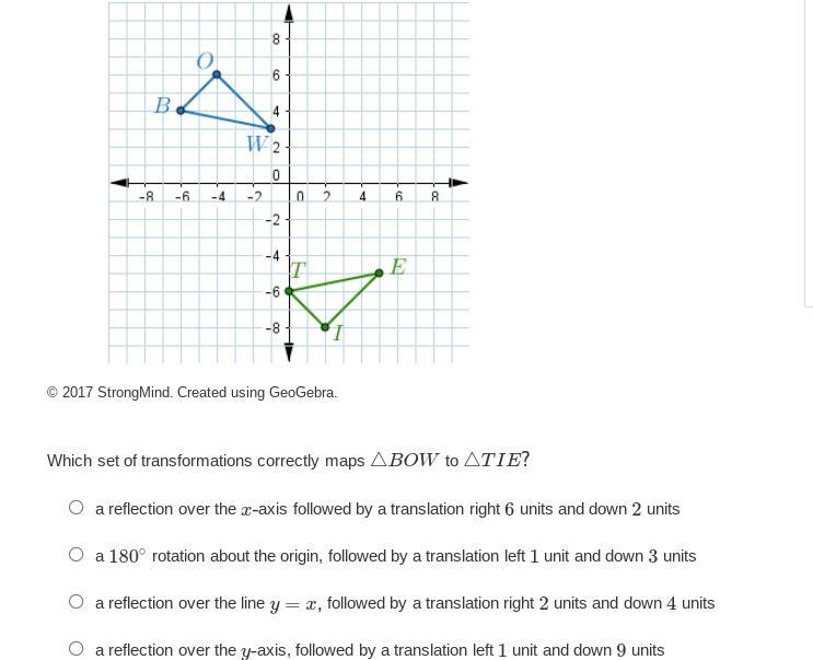 #1 Which set of transformations correctly maps △BOW to △TIE?