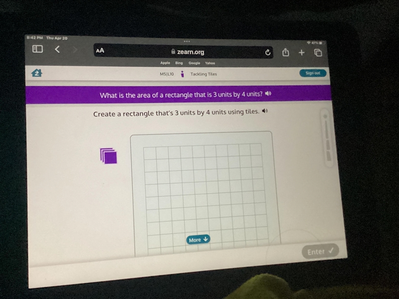 Then to find the area, the formula for that is Base x Height so all you have to do is multiply 4*3 and that's 12.