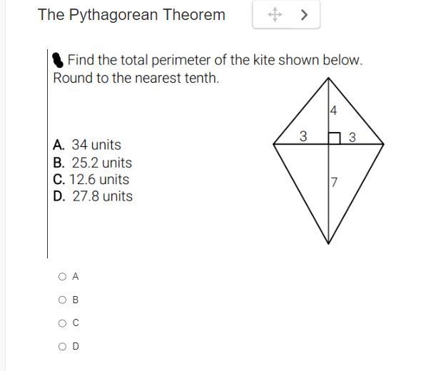 2(5) + 2√(3^2 + 7^2) = 10 + 2√58 = 25.2
