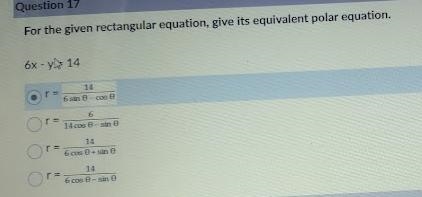 Substituting for x and y in the original rectangular equation 6x - y = 14,