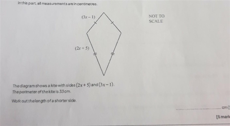 shorter side = 3x - 1 = 3(2.5) - 1 = 7.5 - 1 = 6.5 cm