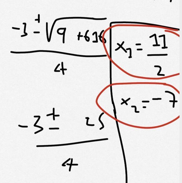 Solve using the quadratic formula: 2x^2+3m=77-example-1
