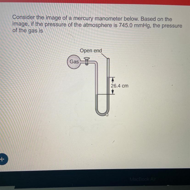 750.0 mmHg + 26.4 cm = 766.4 mmHg