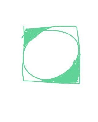 10. The diagram at right shows a circle inscribed in a square. Find the area of the shaded region if the side length of the square is 6 meters.